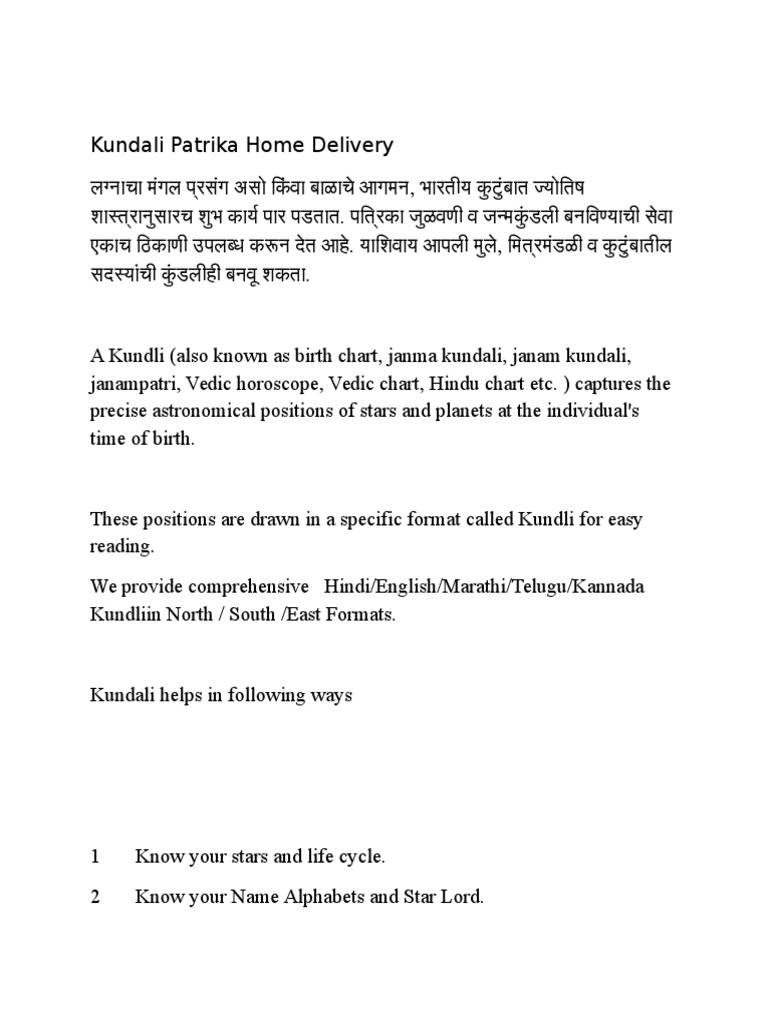 Kundali Patrika Home Delivery - Janamkundli, janam kundli in marathi, janma kundli, free janam kundli, online janam kundli.